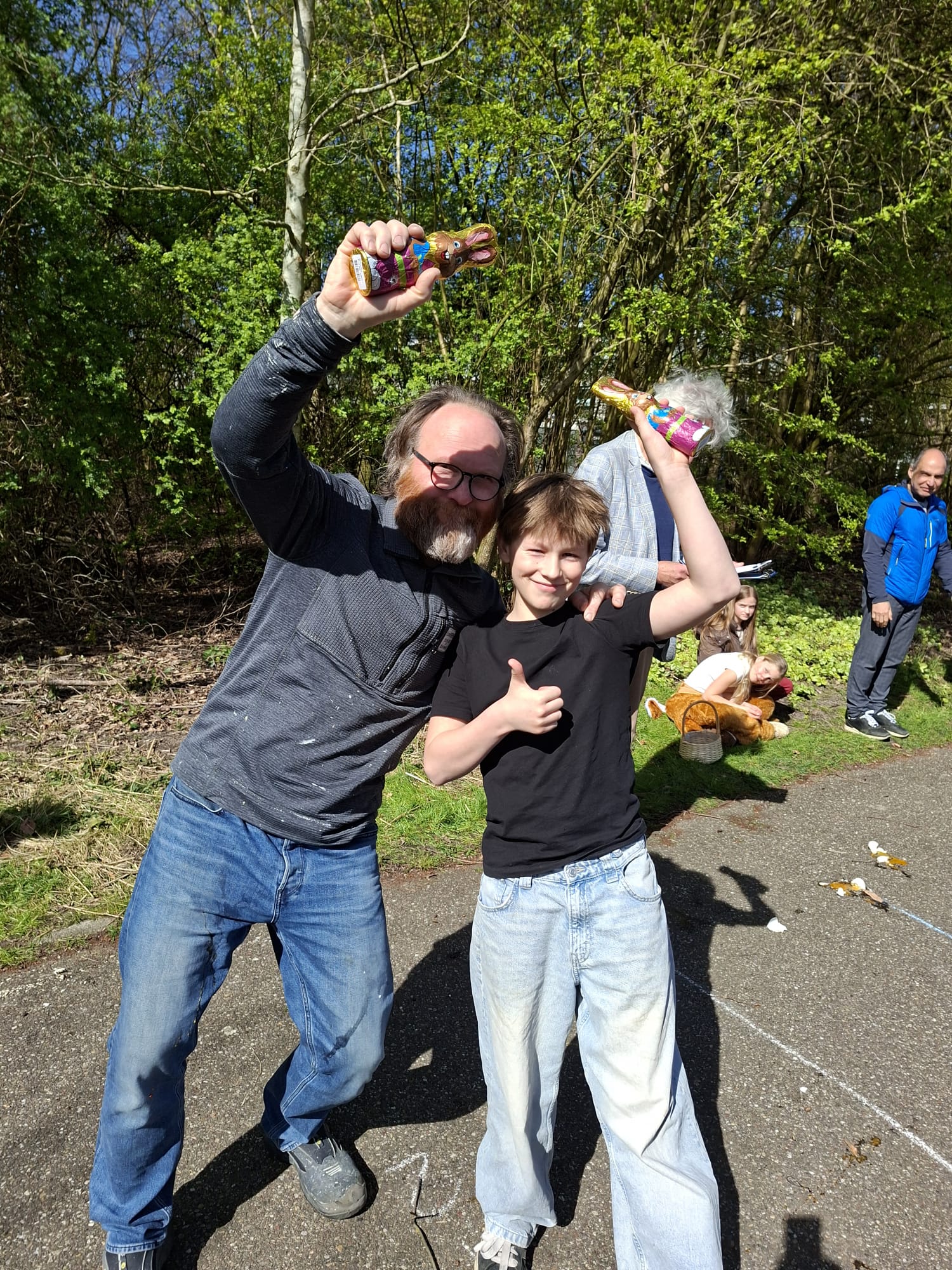 Ook dit jaar waren er paas activiteiten in de wijk. De paashaas had eitjes verstopt en op het fietspad werden weer de nodige eieren gegooid en gevangen.